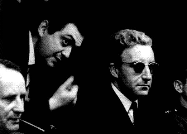 | 세트장에 있는 스탠리 큐브릭과 피터 셀러스(오른쪽). 셀러스는 이 영화에서 영국 대령, 미국 대통령, 스트레인지러브 박사 1인 3역을 연기했다. ⓒSony/columbia Pictures Industries Inc. | 서울시립미술관 제공 |