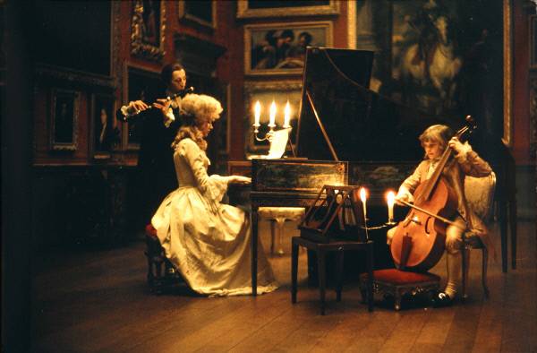 | 린든 부인(마리사 베렌슨)이 그녀의 아들 브라이언 패트릭 린든(데이비드 몰리)와 연주를 하는 장면. 가정교사 사무엘 런트(머리 멀빈)이 뒤에 서 있다. ⓒWarner Bros. Entertainment Inc. | 서울시립미술관 제공 |