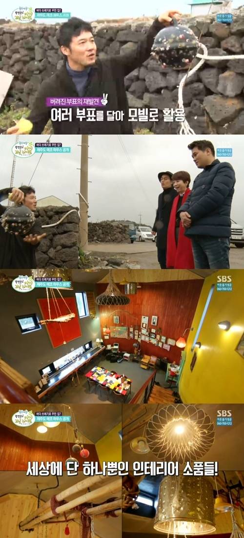 방중현의 집안 곳곳에는 부표, 튜브, 드럼 세탁기, 고기잡이에 사용된 대나무까지 쓰레기로 버려지는 것들을 모아 만든 멋스러운 작품들로 가득했다. (사진=SBS '좋은 아침' 방송 캡처)