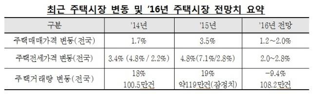 8일 한국감정원은 ‘2015년 부동산시장 동향 및 2016년 전망’ 보고서를 통해 이 같은 내용을 담은 올해 부동산시장 전망을 내놨다.