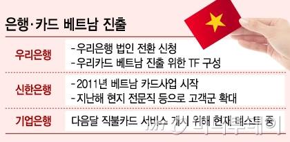 은행과 카드사가 손잡고 베트남 카드시장 진출을 가속화하고 있다. 베트남은 은행 서비스 보급률이 다른 동남아시아 국가에 비해 낮은 '블루오션'으로 꼽힌다.