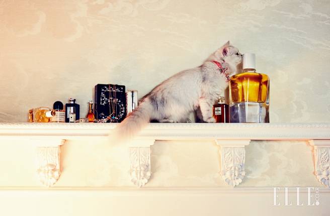 넘버5 주얼 장식 아크릴 백은 가격 미정, Chanel. 플라워 모티프의 네크리스는 4천9백10만원대, Chaumet. 롱 체인 디바 네크리스는 가격 미정, Bulgari. 고양이가 착용한 핑크 컬러 실크 보타이는 가격 미정, Hermes. (왼쪽부터) 재스민 향이 풍부한 쥬르 데르메스 오 드 퍼퓸, 50ml 14만1천원, Hermes. 장미와 우드가 어우러진 진한 우디 향. 우드 이모텔 오 드 퍼퓸, 100ml 29만원, Byredo. 잉글리쉬 페어 앤 프리지아 코롱, 피오니 앤 블러쉬 스웨이드 코롱, 9ml X 5개, 16만원대. 섬세한 블랙 오키드의 향연. 다크 앰버 앤 진저 릴리 코롱 인텐스, 100ml 23만6천원. 모두 Jo Malone London. 부드러운 로즈 향이 담긴 골드 장식의 쟈도르 엑스트레 드 빠르펭, 15ml 28만원, Dior. 은은한 장미 향의 N.5 오 드 빠르펭, 100ml 21만원, Chanel. 빅 사이즈의 쥬르 데르메스 오 드 퍼퓸은 에디터 소장품.