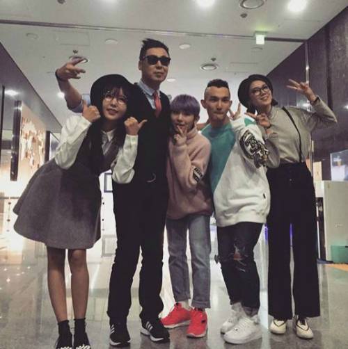 공개된 사진 속에는 가수 계범주 세븐틴의 우지, 노이즈의 한상일, 오렌지 캬라멜의 리지와 레이나와 함께 다정한 모습으로 포즈를 취하고 있는 담겨 훈훈함을 자아냈다.