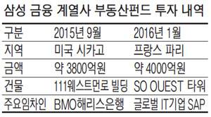 삼성 금융계열사들은 지난해 6월 국외 부동산 투자 확대를 위해 '삼성SRA글로벌코어오피스사모부동산투자신탁 제1호'를 결성했다. 이 펀드는 삼성생명·삼성화재·삼성증권이 출자해 5000억원 규모로 결성했으며 금융사 대출 등을 고려한 레버리지 효과를 감안할 때 총 투자 가능 규모는 1조원을 웃돈다. 펀드 운용은 삼성생명 자회사인 삼성SRA자산운용이 맡고 있다. 펀드 출자에 참여한 삼성생명과 삼성화재 등은 초저금리 상황에 대처하기 위해 최근 수년간 외국 오피스 빌딩 등 대체투자를 늘려왔다.