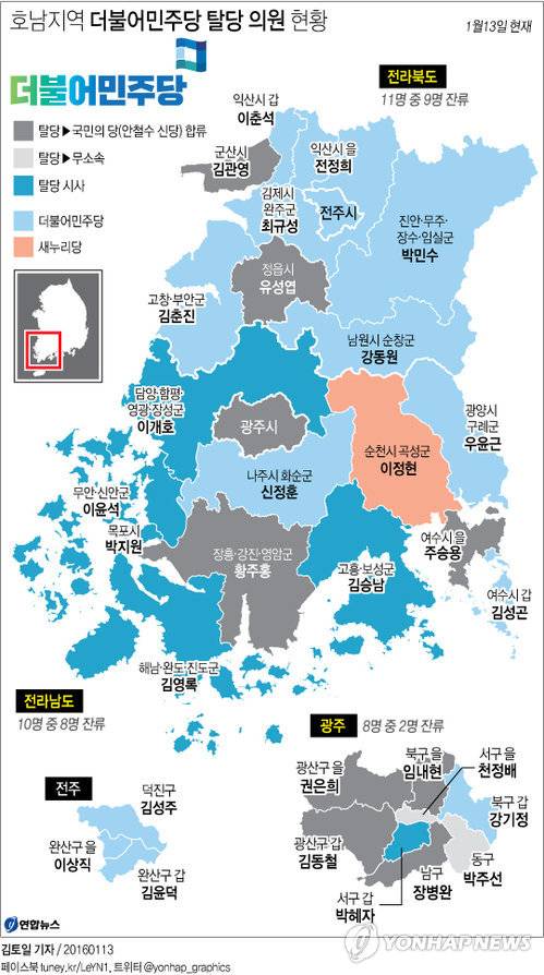반면에 조정식 우원식 이찬열 의원과 김부겸 전 의원 등 일부는 더민주에 남아 선거를 준비 중이다. 이들은 대부분 수도권나 야당이 어려운 지역에 지역구를 두고 있어 정치적 행보에 더욱 신중한 입장인 것으로 알려졌다.