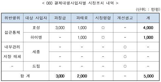 이 중 효성에게는 과징금 3천만원과 과태료 1천만원, 하이엔에게는 과태료 1천만원이 부과됐다. 시정명령도 함께 내려졌다. 나머지 사업자에게는 개선권고 조치만 결정됐다.