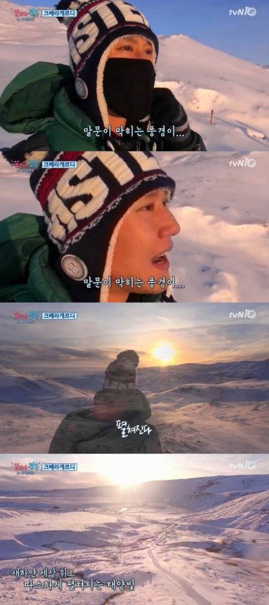 정상훈, 조정석, 정우, 강하늘은 눈 덮인 크베라게르디를 걸으며 아름다운 경관에 흠뻑 취했다.