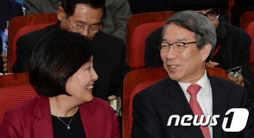 | 정운찬 동반성장연구소 이사장(오른쪽)과 박영선 더불어민주당 의원. /자료사진=뉴스1DB |