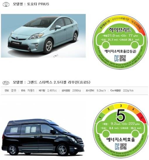 한편 새롭게 도입된 자동차 연비 표시 라벨은 복합 연비와 이산화탄소 배출량만을 크게 표시했던 기존 라벨과 달리 도심 연비와 고속도로 연비도 동일한 글자 크기로 표시한다. 내연기관 차량은 연비에 따라 1~5등급으로 구분되고 경차 및 친환경 차량은 에너지소비효율 등급 표시 등이 제외됐다.