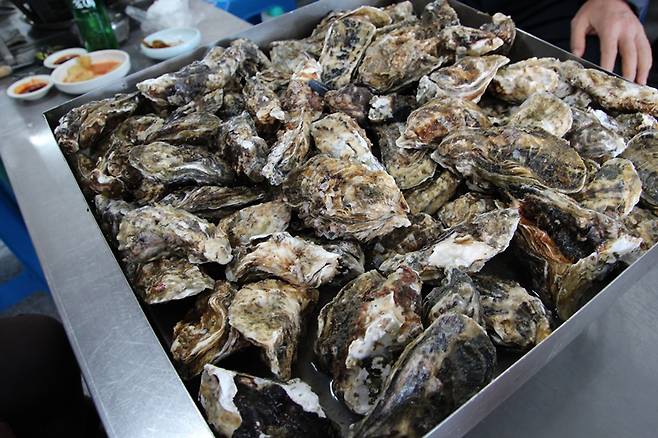 한잔 술이 더해져야 굴구이 참맛 제대로 만끽할 수 있어