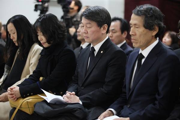 | ▲ 국민의당 한상진 창당준비위원장과 안철수 인재영입위원장이 16일 오후 서울 구로구 성공회대 대학성당에 마련된 고 신영복 교수 빈소를 찾아 조문한 뒤 추모예배에 참석하고 있다. |