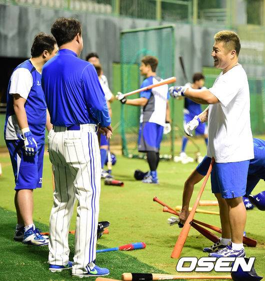 [OSEN=괌, 손찬익 기자] 삼성의 1차 캠프가 차려진 17일 저녁 괌 레오팔레스 리조트 야구장. 첫 야간 특타 훈련이 열린 이날 '맏형' 이승엽부터 고졸 신인 황선도까지 방망이를 들고 그라운드에 나타났다. 냉혹한 승부의 세계에서 살아남기 위해 스타도 젊은 피도 구별이 없었다. 방망이가 공을 때리는 소리가 운동장에 울려 퍼졌다. 1980년대 삼성 마운드를 이끌었던 성준 BB아크 지도 위원과 양일환 퓨처스 투수 코치도 배팅볼 투수를 자처하며 훈련 분위기를 띄웠다.
