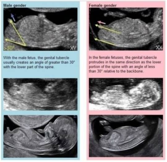 아이의 다리쪽에서 초음파를 찍었을 때 (엄마들 커뮤니티에서 쓰는 단어로) '미사일'이 있느냐 없느냐에 따라, 누워있는 옆모습을 보고 아이의 성기의 각도가 어떻게 향해 있느냐에 따라 관측이 가능하다.