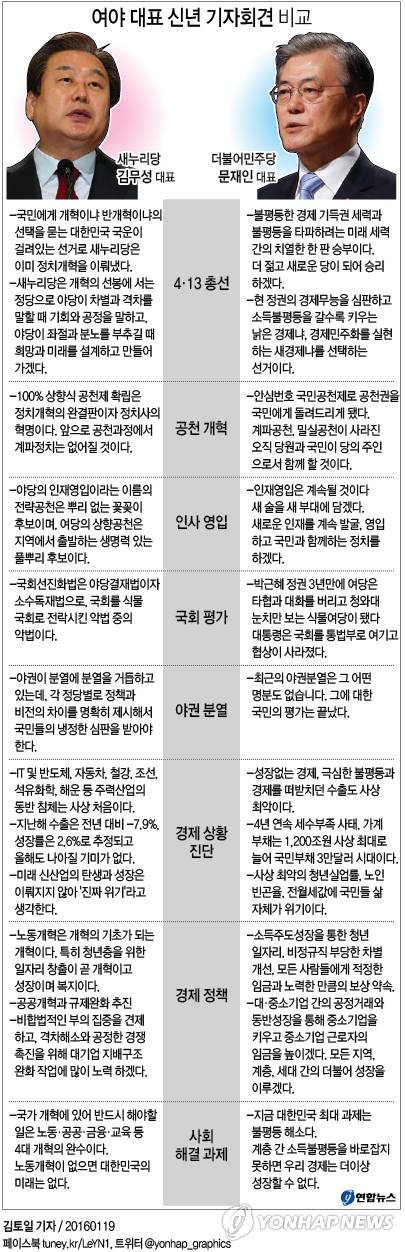 <그래픽> 여야 대표 신년 기자회견 비교