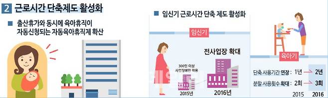 오는 3월부터는 임신기 근로자가 근로시간을 단축해 일할 수 있는 제도가 전 사업장으로 확대된다. 아빠의 달’ 지원기간은 1개월에서 3개월로 늘어난다.