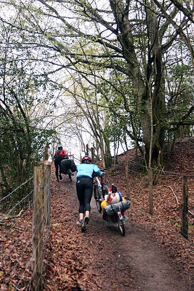 | ▲ 자전거 순례자들이 힘겹게 산길을 오르고 있다. |