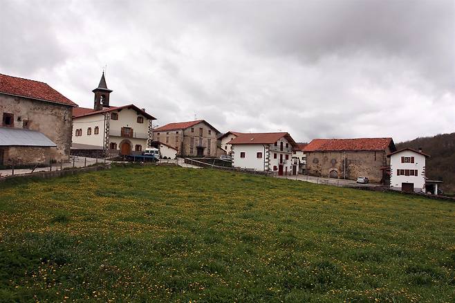 메스키리츠 봉을 넘고 12.5km를 걸어서야 점심을 먹을 마을, 헤레디아인(Guerediain)에 도착했다. 바스크어로는 마을 이름이 비스카렛(Biscarret)이다.