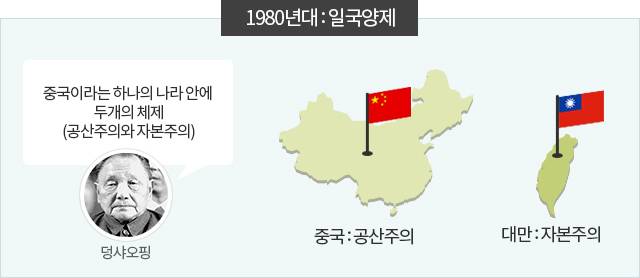 1978년 이후 중국이 개혁개방노선을 채택하면서 중국과 대만의 관계도 교류와 협력이 이뤄지기 시작한다. 대만 역시 경제적·외교적 고립을 벗어나기 위해 중국과 대화에 나선다. 무력에 의한 대만 통일 또는 해방을 주장하던 중국은 '평화통일' 노선으로 변경해 대만에게 자본주의와 군대를 인정하는 자치권을 부여한다. 그리고 82년 덩샤오핑은 '하나의 나라 안에 두개의 체제(공산주의와 자본주의)'라는 뜻의 '일국양제(一國兩制)'에 의한 통일을 제안한다. 현재 중국은 하나의 중국 안에 두개의 체제가 공존한다는 이 원칙 아래 대만 뿐만 아니라 홍콩과 마카오 역시 중국의 영토라고 보고 있다. 이 시기 대만과 중국은 가족친지 방문, 간접통신 우편, 직접무역 및 직접 투자 등으로 교류를 점점 넓혀나간다.