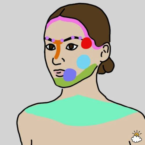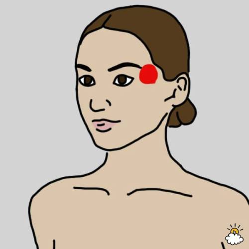 관자놀이에 난 여드름은 수분 부족을 나타낸다. 머리를 너무 자주 감으면 두피가 오히려 기름져지는 것과 같이, 물을 적게 마시면 관자놀이 쪽이 지성이 된다. 유분이 모공을 막아 여드름이 생긴다.