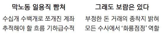 그만큼 한 계좌에서 여러 개의 차명계좌로 다시 쪼개지고, 수표와 현금을 반복해서 오간 돈의 출처와 종착지를 파악하기란 결코 생각만큼 쉬운 작업이 아니다.
