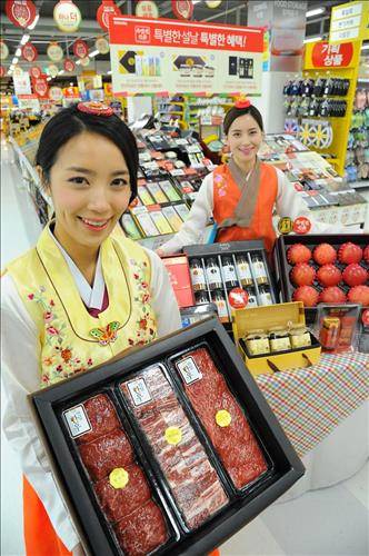 홈플러스 설 선물세트 본판매는 25일 131개점, 28일 모든 점포에서 시작되며 2월 9일까지 9대 신용카드(신한·삼성·현대·BC·KB국민·하나외환·롯데·씨티·NH농협)로 구매하는 고객에게는 최대 30% 할인 또는 상품권 혜택이 주어진다.