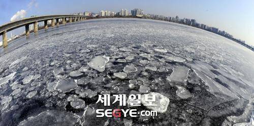 | 서울에 한파 경보가 내려진 24일 서울 여의도 한강시민공원 일대가 얼어붙어 있다. 이재문기자 moon@segye.com |