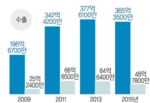 가솔린 승용차 수출입 시장에서는 여전히 국내 업계가 강세다. 지난해 국내 업체의 가솔린 승용차 수출액은 365억3500만달러, 수입액은 35억9800만 달러였다. 2007년 260억8400만달러에서 100억달러 이상 늘었다. 다만 가솔린 승용차 수입액도 2007년 21억3200만달러에서 2015년 35억9800만달러로 14억달러 이상 늘리며 수입차들이 국내시장을 확대하고 있다.