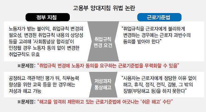 정부 '양대지침' 헌법·노동법 훼손 "꼬리가 몸통을 흔든다" 비판 일어