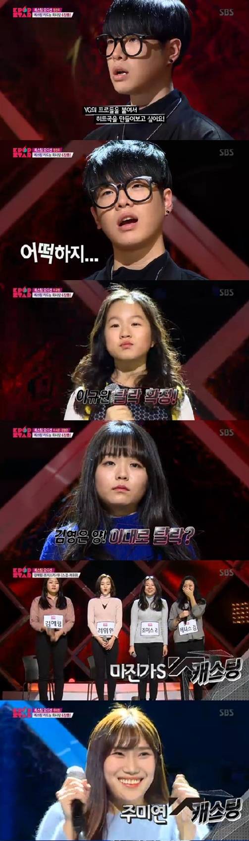 24일 오후 방송된 SBS '일요일이 좋다–K팝스타5'에서는 본격적인 후반전을 시작하는 경계점인 동시에 3대 기획사의 자존심을 건 '캐스팅 오디션'이 진행됐다.