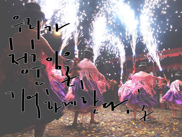 새침데기 언니 오빠도, 넥타이 부대도, 등 굽은 ‘할매’도, 세 살배기 꼬마도 다 하나였다. 코파카바나의 깐델라리아 성모 마리아 축제(Fiesta de la Virgen de Candelaria). 볼리비아의 1월도 무시무시하게 추웠지만 청춘의 꽃이 지천으로 피었다.