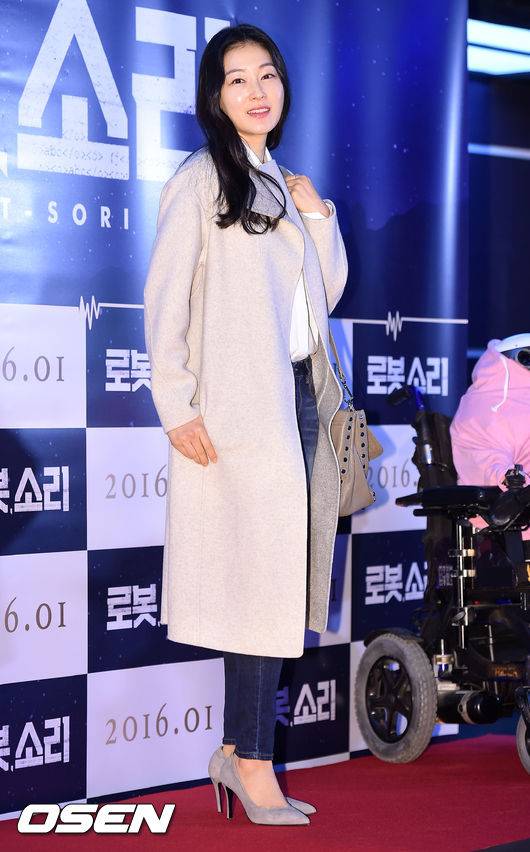 [OSEN=정송이 기자] 25일 오후 서울 롯데시네마 월드타워에서 열린 영화 '로봇, 소리' VIP시사회에 참석한 박진희가 포토타임을 하고 있다.