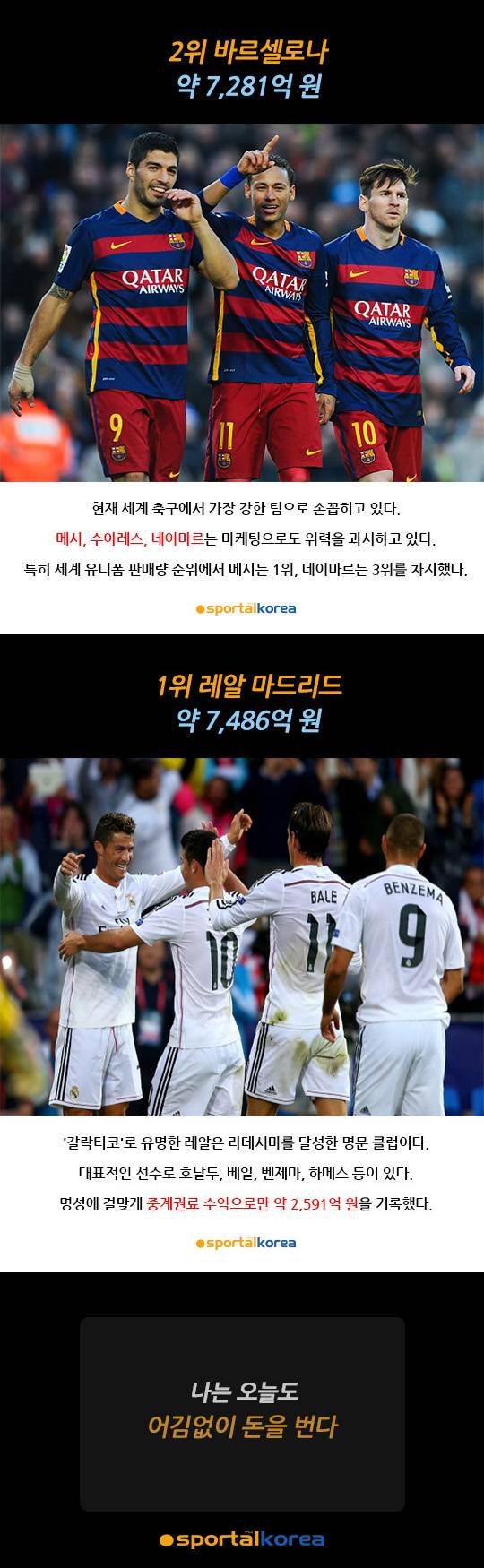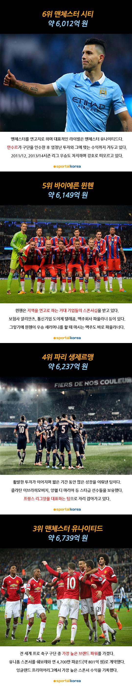 [스포탈코리아] 영국 ‘스카이스포츠’는 "세계적인 회계법인 딜로이트가 2014/2015시즌 전 세계 프로 축구클럽의 수익 창출 순위를 공개했다"고 전했다.