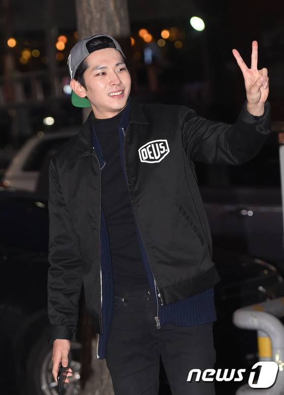 배우 지윤호가 26일 오후 서울 논현동 마포숯불갈비에서 열린 tvN 월화드라마 '치즈인더트랩'(치인트) 종방연에 참석하며 브이를 그리고 있다.