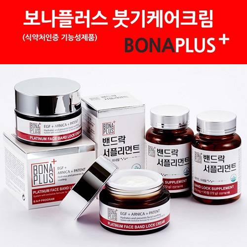 붓기케어 화장품 보나플러스는 플래티넘 페이스 밴드락크림과 밴드락 서플리먼트로 구성되어 있다.