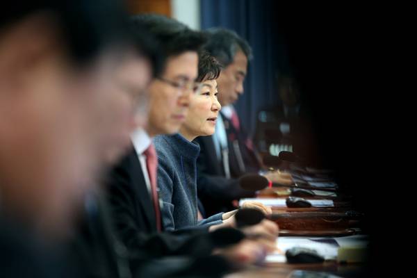 | 지난 1월 5일 청와대에서 열린 첫 국무회에서 박근혜 대통령이 모두발언을 하고 있다. / 청와대 사진 기자단 |