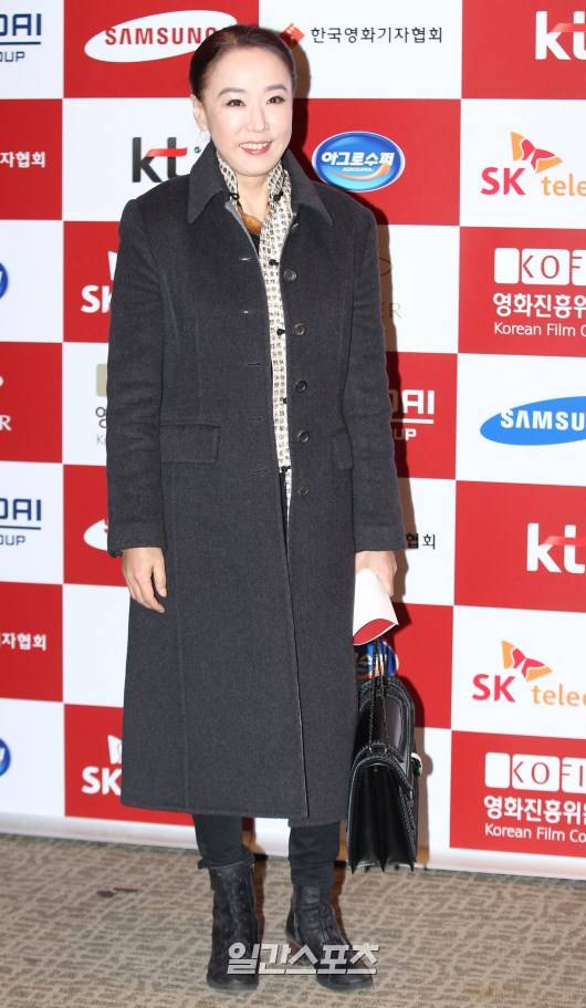 강수연이 27일 영화기자협회 올해의 영화상 시상식이 진행된 서울 중구 태평로 프레스센터 국제회의장 포토월에서 포즈를 취하고 있다.