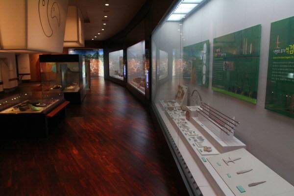 전시실로 들어서자 천장과 발아래에 별자리가 그려져 있다. 농사가 중요한 시기에 별자리를 보며 날씨를 알기 위해 애쓴 선조들의 지혜를 잠시 엿본다. 왼쪽으로부터 유물을 살피면 전시실을 둘러보기 좋은데 아이는 오른편 발굴과정부터 먼저 살핀다. 재현한 발굴 현장의 축소 모형과 영상을 보는 아이가 진지하다.
