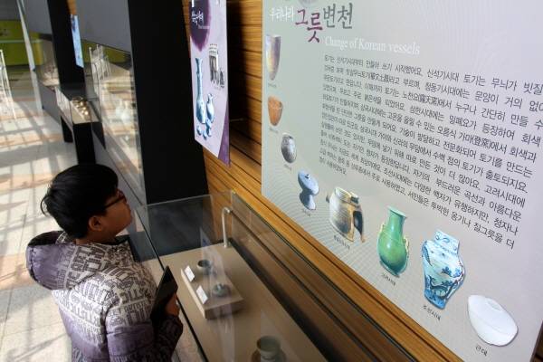 | ▲ <진주청동기박물관> 전시실 밖에는 그릇 변천에 관한 유물과 설명이 빙 둘러 전시되었다. |