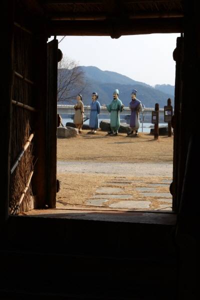 햇살 보금은 자리에서 일어나 아래층에서 청동기 시대 대평마을을 배경으로 한 입체 영상을 관람하고 나왔다. 밖은 춥다. 박물관에서 논 지 2시간이 가까웠다. 아쉽게도 박물관에는 자판기가 밖에 하나 있다. 다른 매점을 비롯한 겨울에 이용하기 좋은 편의 시설이 없다. 주전부리가 없어 입이 심심한 아이를 겨우 달래서 목책을 빙 둘러 세워 재현한 청동기 시대 대평마을 속으로 들어갔다.