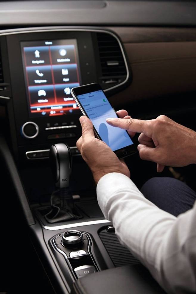 애플 카플레이나 안드로이드 오토처럼 스마트폰과 연동되는 점도 주목을 끈다. 와이파이로 휴대폰과 연동시키면 멜론과 P2C(폰 투 카) 기능을 이용할 수 있다. 스마트폰에 저장된 내 연락처와 통화기록 등 기본적인 전화 기능을 8.7인치 화면으로 확인할 수 있는 점은 큰 장점이다. 게다가 문자 메시지가 디스플레이 화면에 그대로 뜨고, 안전 운전을 위해 음성으로 메시지를 읽어주는 기능도 있어 운전 중 스마트폰을 그대로 사용하는 것 같은 효과를 누릴 수 있다.