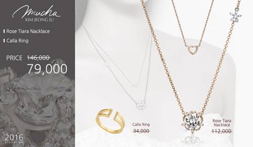 이번 할인행사에서는 '라뮈샤'의 여자 목걸이 로즈티아라를 저렴한 가격에 구매할 수 있다. 로즈티아라는 대만 에바항공 기내면세점에서 여성 목걸이브랜드 상품으로서 폭발적인 인기를 얻으며, 성공적으로 해외진출을 시작한 상품이다.