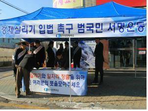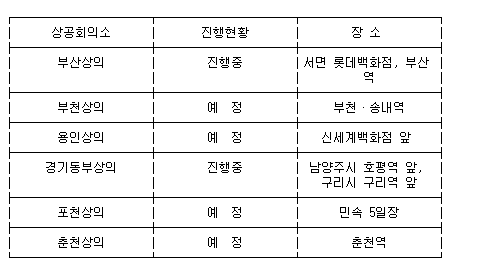 가두서명운동도 활발하게 진행 중이다. 전국상의와 중기중앙회 중심으로 주요 기차역과 터미널, 전통시장에서 서명을 받고 있다.