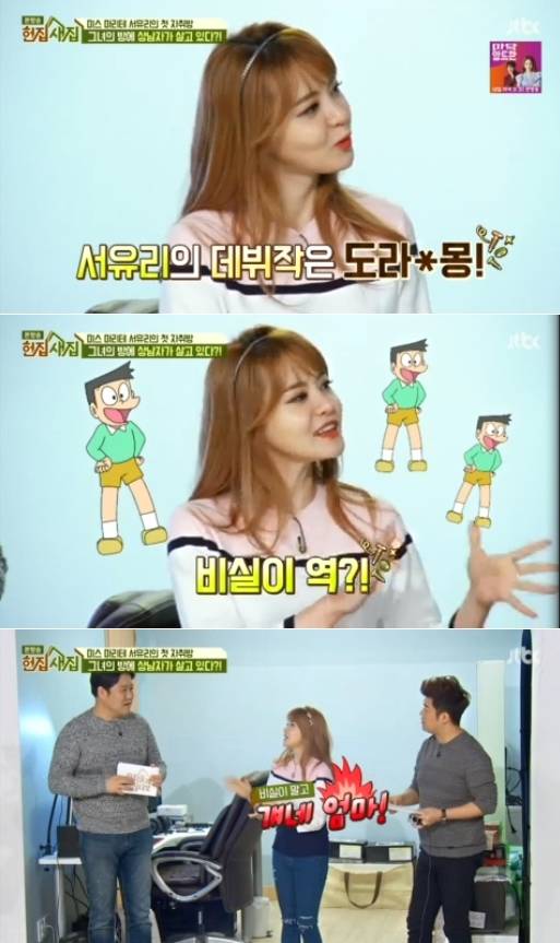 서유리는 1월28일 방송된 JTBC '헌집 줄게 새집 다오'(이하 헌집새집)에서 성우 시절 첫 작품으로 '도라에몽'에서 비실이 엄마 목소리를 연기했다고 밝혔다.