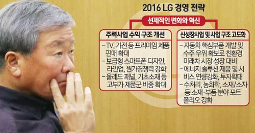 중국 업체들의 추격으로 고전하고 있는 기존 주력 사업의 경우 프리미엄 제품으로 수익성을 강화하는 방안이 논의됐다. LG전자는 최근 론칭한 초 프리미엄 가전브랜드인 LG 시그니처와 올레드 TV, 울트라 HD TV 등 고급제품의 판매 확대에 힘쓰겠다는 계획을 내놓았다. LG디스플레이는 올 한 해 설비투자의 4조~5조원 중 절반 이상을 올레드에 쏟아부어 중국 업체들과의 기술 격차 확대에 주력한다는 방침이다. LG화학도 석유화학 및 소재 제품에서 차별화된 제품 개발과 판매 확대를 통해 수익성을 늘린다는 계획이다.