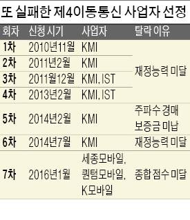 정부가 2010년 이후 일곱 번째 선정 심사에서도 제4이동통신 사업자를 찾지 못한 것은 안정적 재정 능력을 갖춘 후보가 없었기 때문이라는 분석이 나온다.