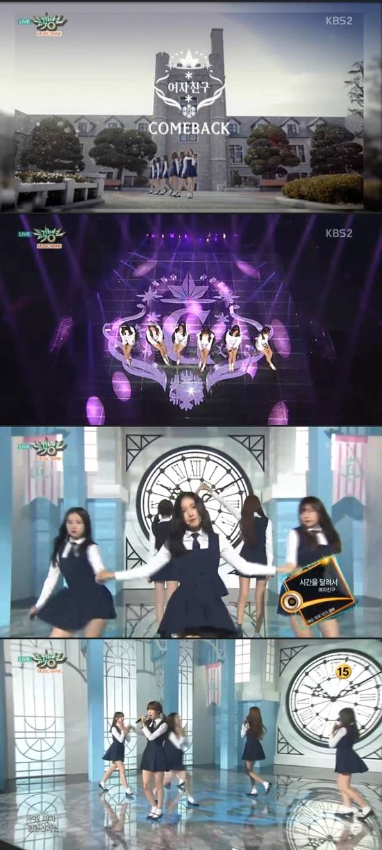 29일 방송된 KBS2 '뮤직뱅크'에서는 여자친구가 발라드곡 '트러스트(TRUST)'와 '시간을 달려서'로 컴백을 알렸다.