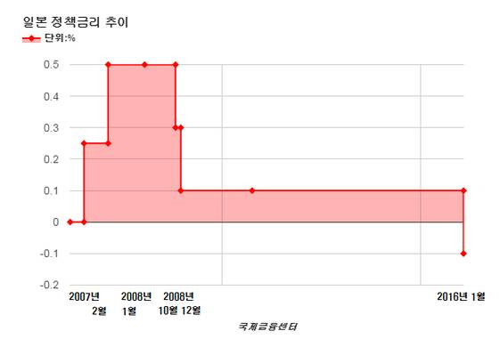 일본은행은 성명에서 “(경기하강) 징후에 선제적으로 대응하고, 2%의 물가 안정 목표를 달성할 수 있는 모멘텀을 유지하기 위해 마이너스 금리 도입을 결정했다”고 밝혔다. 이날 회의에 앞서 일본 총무성이 발표한 지난해 12월 근원 소비자물가지수(CPI)는 전년 동기 대비 0.1% 상승하는 데 그쳤다.
