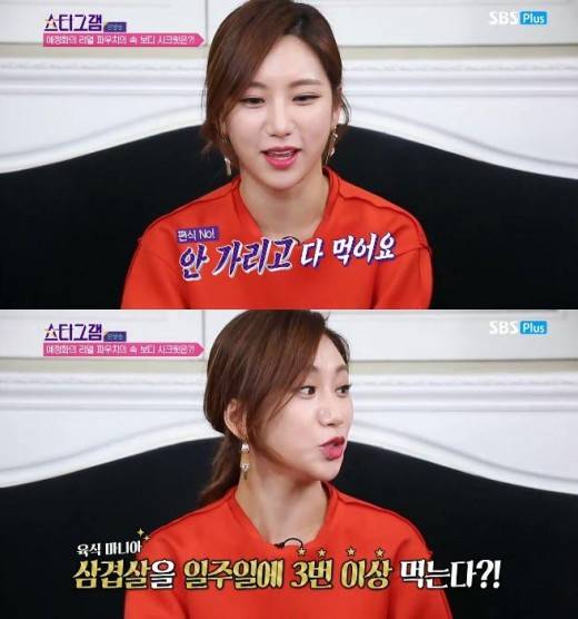 삼겹살을 유독 좋아한다는 예정화는 “일주일에 세 번은 무조건 먹어야 한다”라고 덧붙였다.
