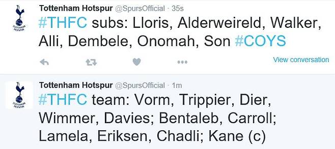 그러나 손흥민은 콜체스터전에선 벤치에서 경기를 시작한다. 경기 한 시간 전을 앞두고 토트넘이 선발 명단을 발표했고, 손흥민은 교체 명단에 이름을 올렸다.