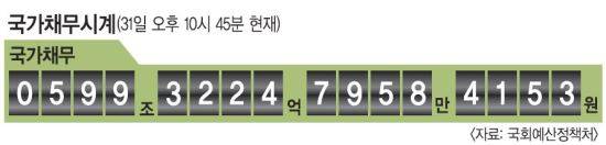 한국의 국가채무는 15년 만에 500조원 가까이 늘었다. 연말 기준으로 2001년 113조1000억원이던 국가채무는 2005년 238조8000억원, 2009년 346조1000억원, 2011년 402조8000억원, 2014년 503조원으로 증가했다. 국내총생산(GDP) 대비 국가채무 비율을 보면 2001년 16.4% 수준이던 것이 2004년 22.4%, 2009년 30.1%로 상승했다. 올해 40%를 넘어설 것으로 예측되고 있다.